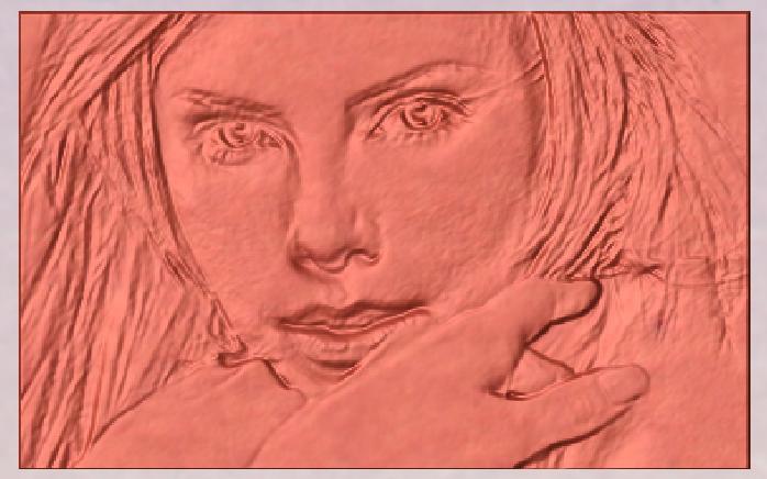 Para que quede con forma de tallado en relieve, haría falta crear primero el modelado 3D